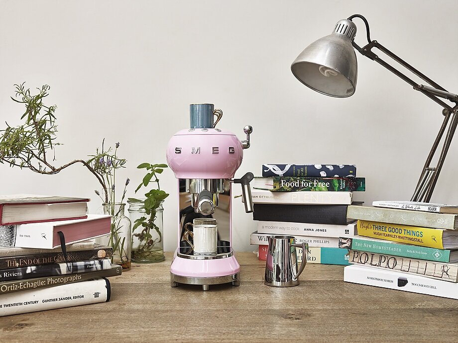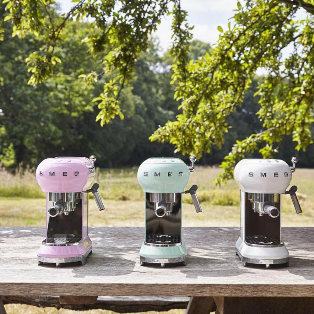 Кофемашина-эспрессо SMEG/ стиль 50-х годов, Материал корпуса: окрашенный металл + цветной пластик, Капучинатор из нерж. стали,
