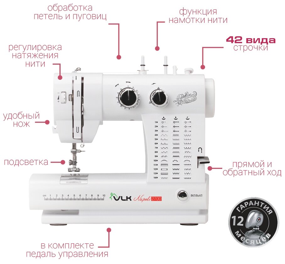 Швейная машина VLK Napoli 2700, 42 вида строчки