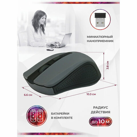 Мышь беспроводная DEFENDER Accura MM-935, комплект 3 шт., 3 кнопки + 1 колесо-кнопка, оптическая, серая, 52936 информация: