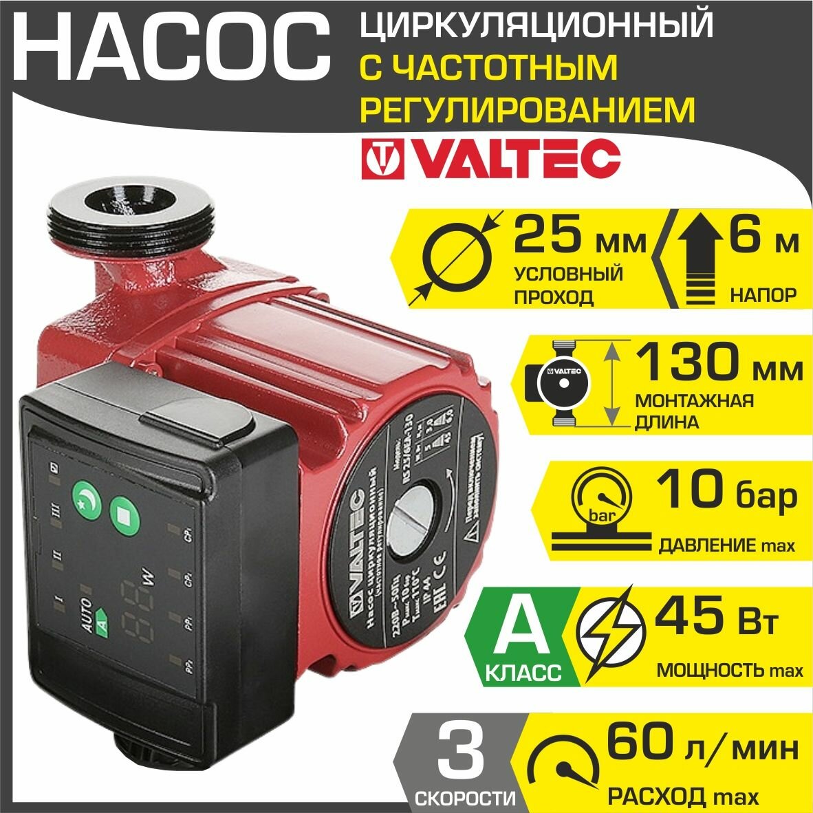 Циркуляционный насос VALTEC RS 25/6EA-130 VRS.256EA.13.0 информация: