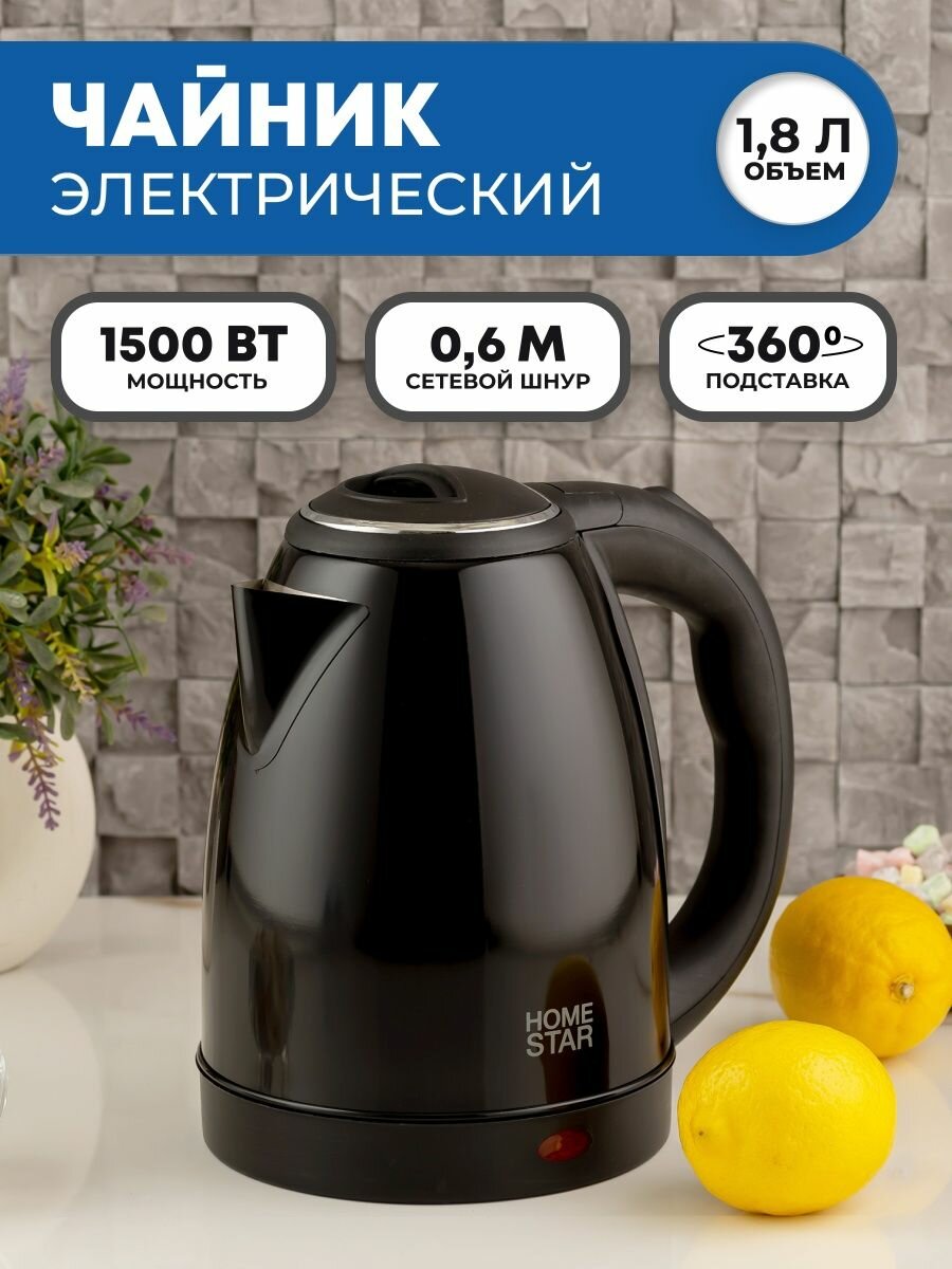 Чайник электрический Homestar HS-1010, металл, 1.8 л, 1500 Вт, чёрный