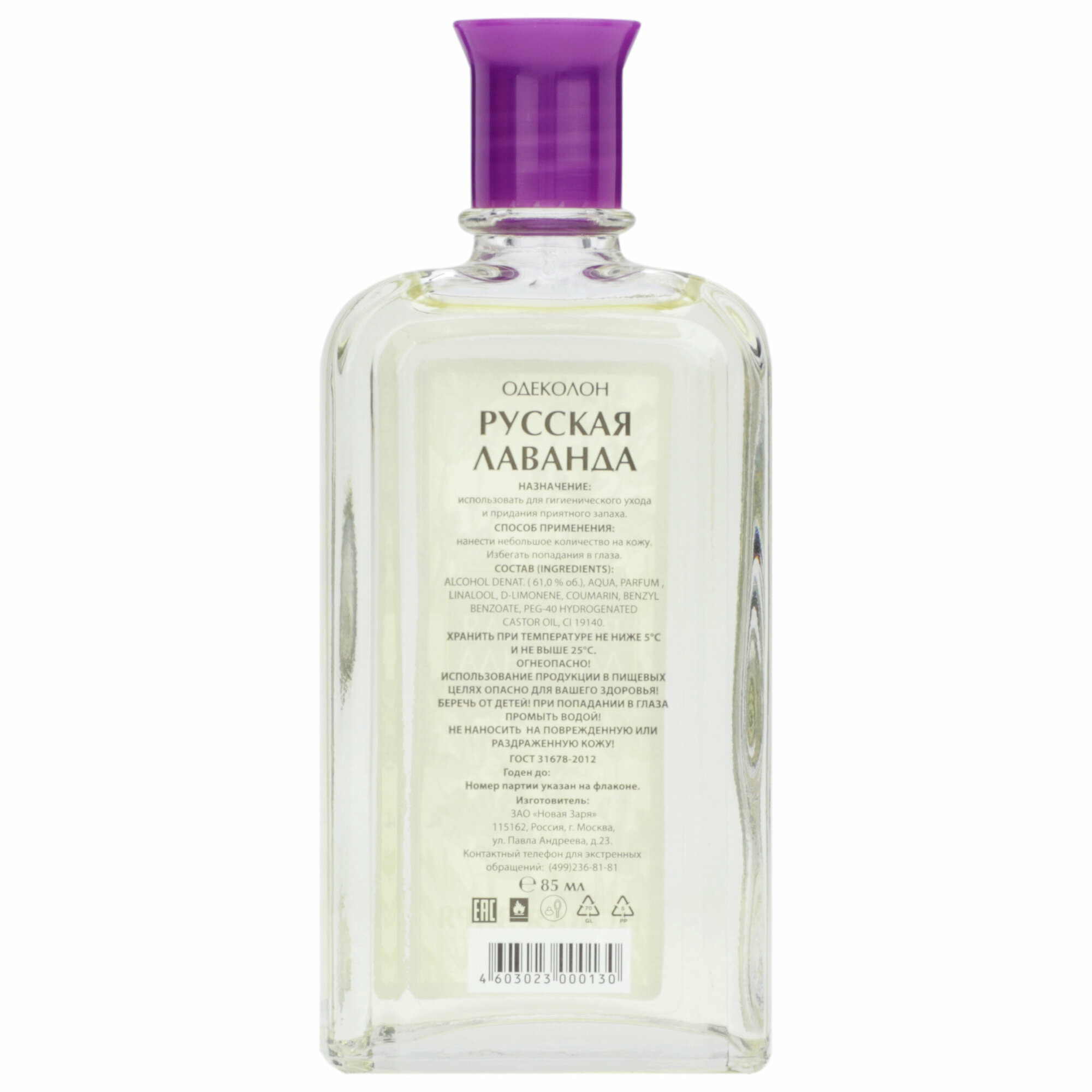 Новая Заря Одеколон Русская Лаванда восточный, цветочный, стекло винт 85 мл информация: