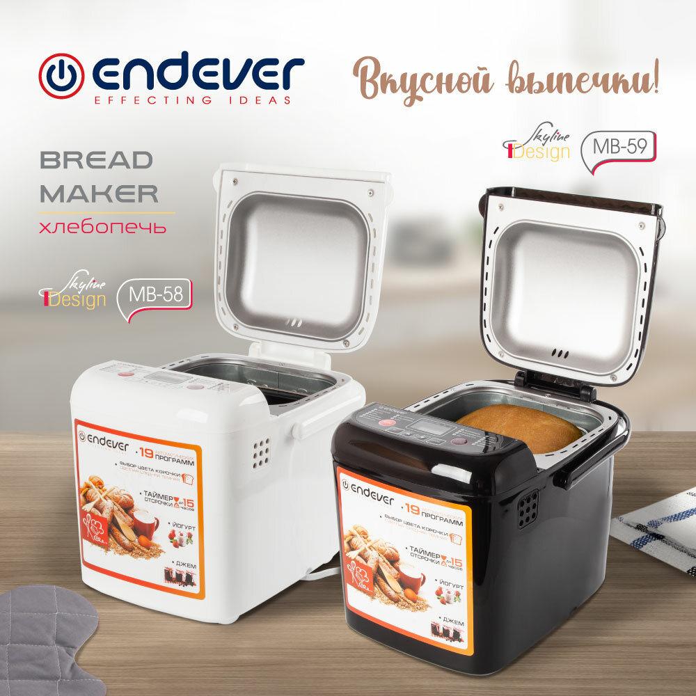 Хлебопечка Endever Skyline MB-58/59 / 19 автоматических программ / выпечка 450/600 грамм / таймер, автоподогрев, пауза