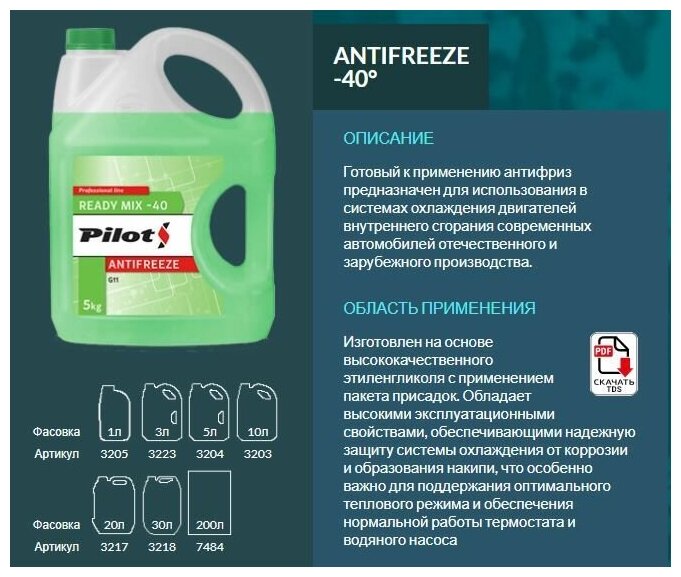 Антифриз Pilots Green Line-40 (5л) PILOTS арт. 3204 930 ₽