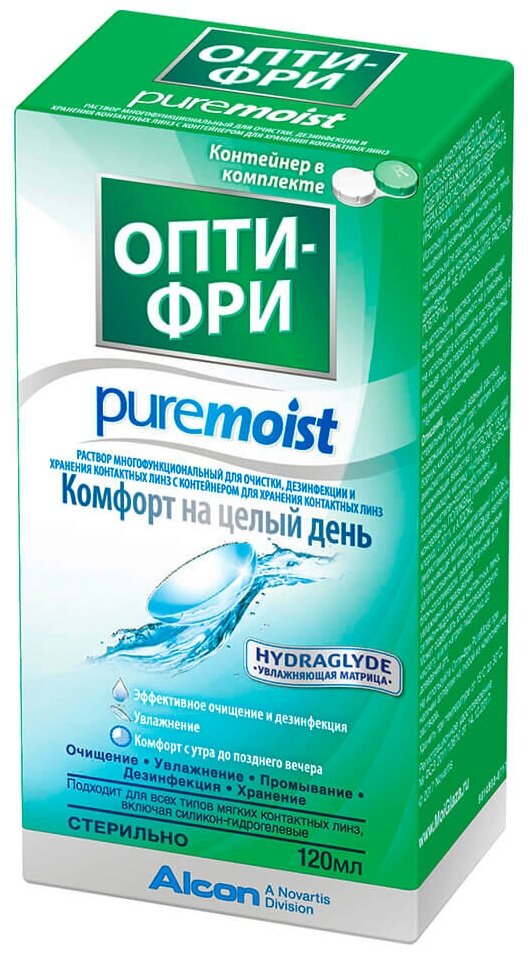 Раствор Alcon Опти-Фри PureMoist, с контейнером, 120 мл, 1 шт.