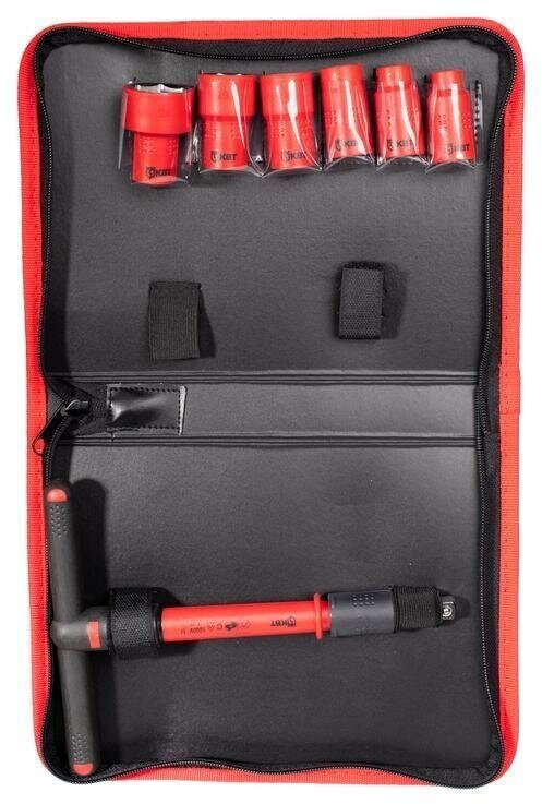 Набор диэлектрических торцевых шестигранных головок с Т-образыной рукояткой 3/8" для работ под напряжением до 1000 В, 7 предметов КВТ НИИ-14 71102 13 520 ₽