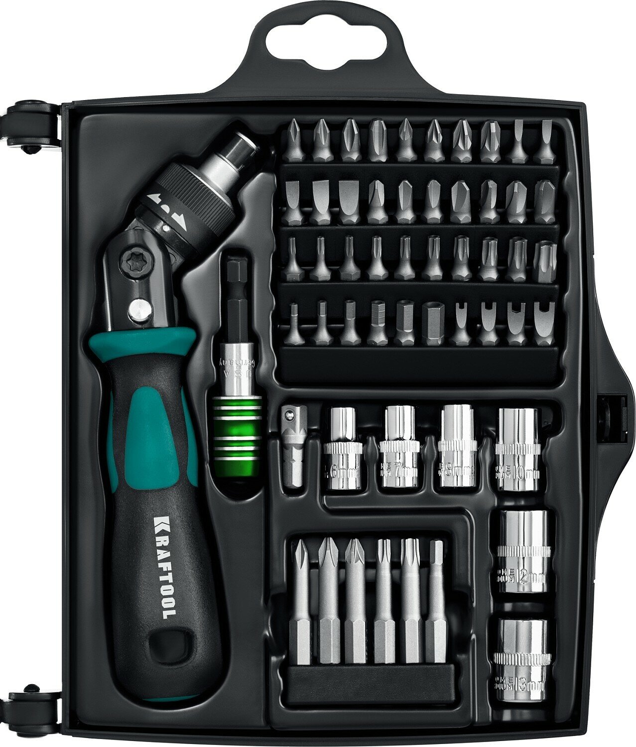 10 цен на KRAFTOOL X-Force-55 набор: реверсивно-рычажная отвертка с насадками 55 шт