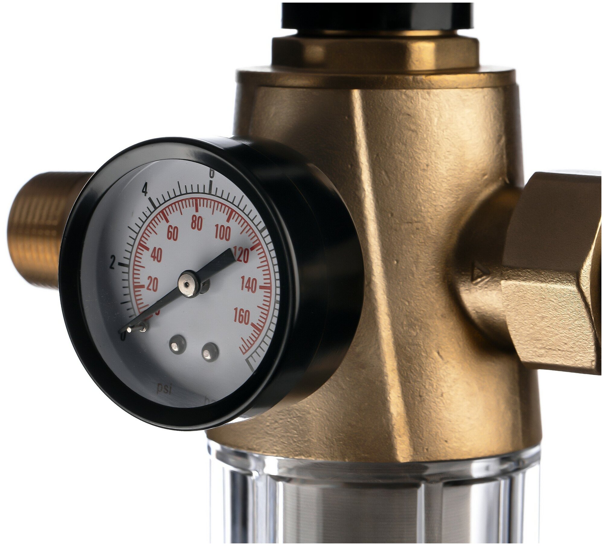 Фильтр механической очистки Гейзер Бастион 7508075233 муфтовый (НР/НР), латунь, с манометром латунь Ду 20 (3/4")