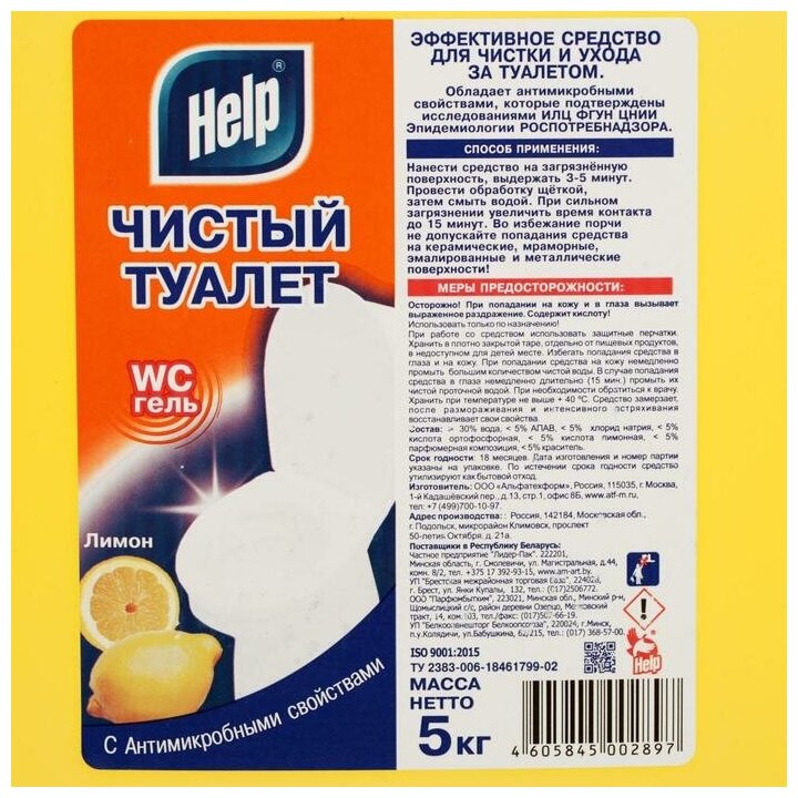 Чистящее средство для сантехники Help Чистый туалет, 5 л информация: