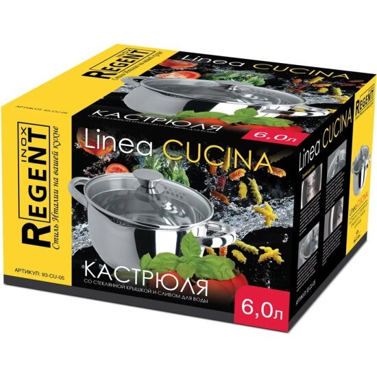 Кастрюля с носиком REGENT INOX Linea CUCINA, 24x13,5см, 6л информация: