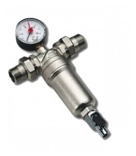 Фильтр грубой очистки с манометром 1 с латунной колбой,промывной Tiemme (3130004)