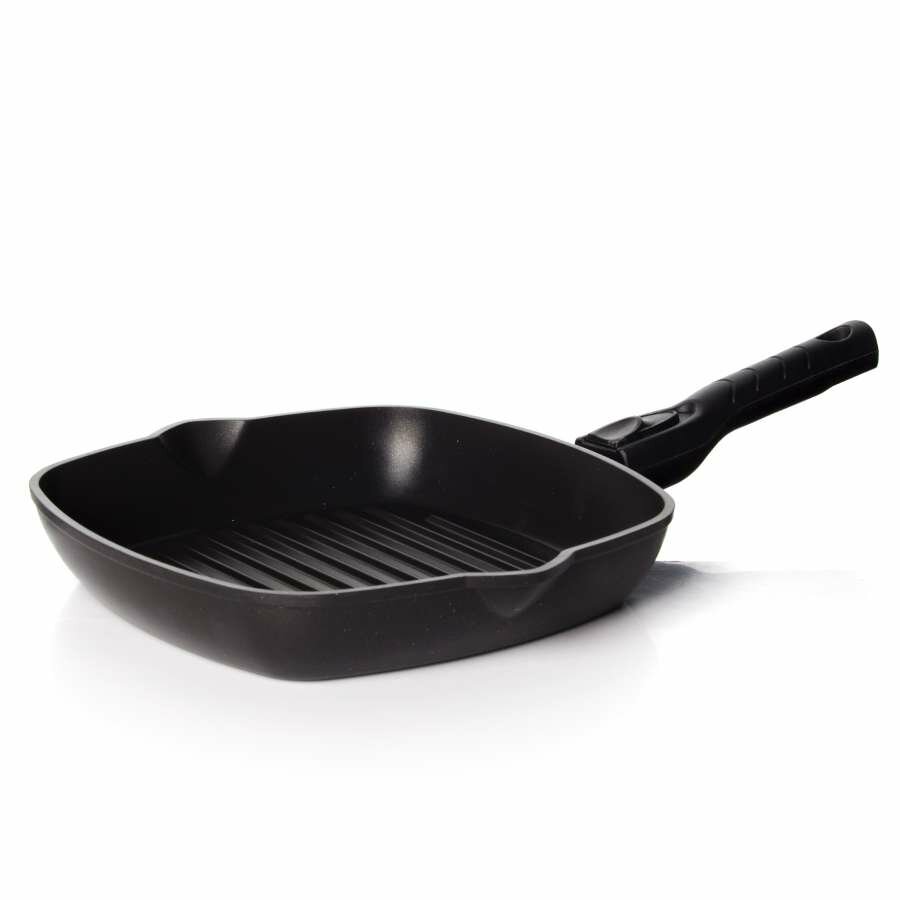 Сковорода- гриль TimA "Шеф", 26х26см, с усовершенствованным двухслойным антипригарным покрытим «GREBLON ЕСО» (Германия), со съем. руч. без крышки