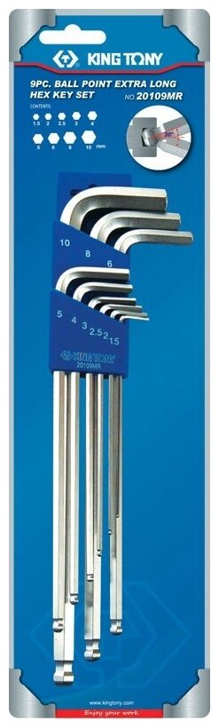 Набор шестигранников KING TONY 20109MR с шаровым окончанием экстрадлинные информация: