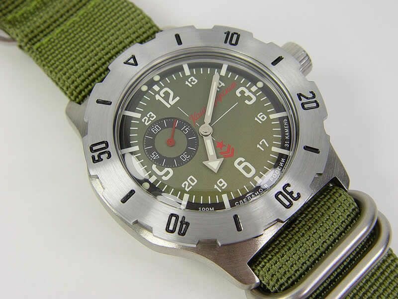 Мужские наручные часы Восток Командирские 350501, нейлон, хаки 9 069 ₽