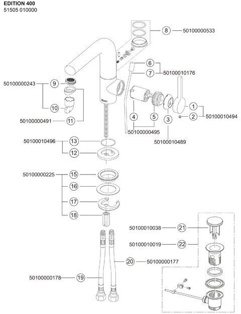 Смеситель для раковины без донного клапана Keuco Edition 400 51505010100
