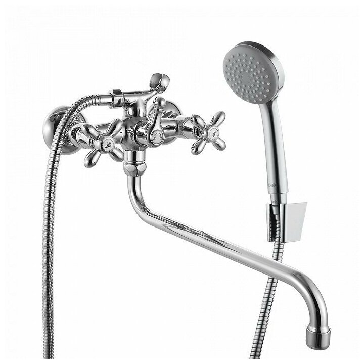 Смеситель на раковину настенный Эверест B46-350 с круглым поворотным изливом, кран-буксы 1/2", хром