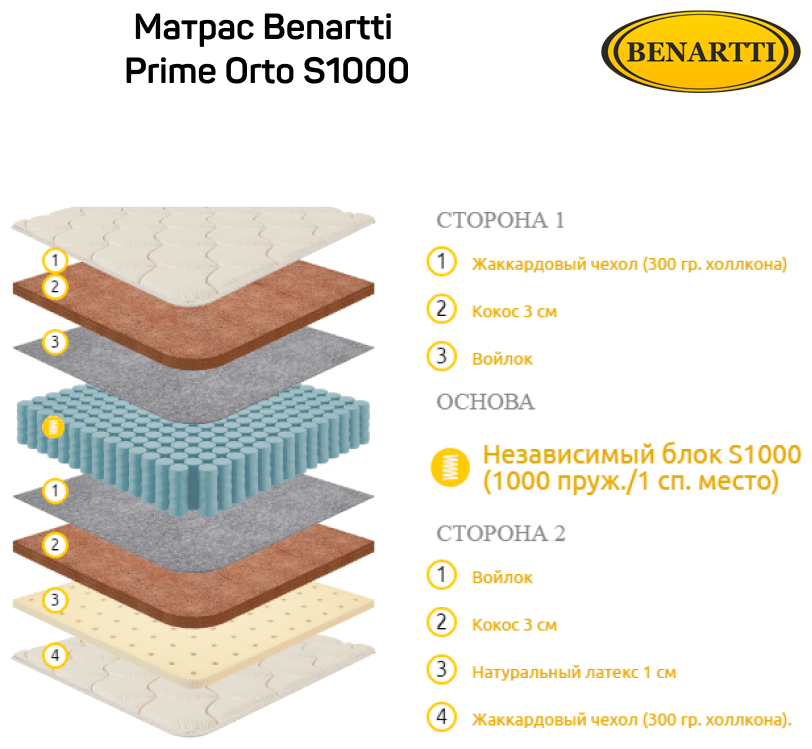 Матрас Benartti Prime Orto S1000, Размер 150х220 см 48 928 ₽