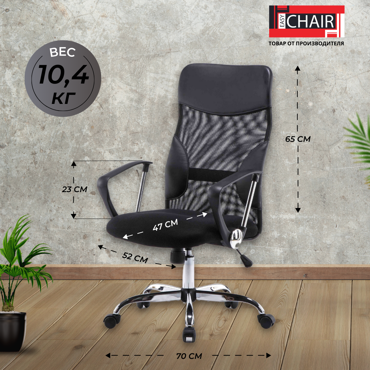 Кресло руководителя Easy Chair кожзам, черный, сетка информация: