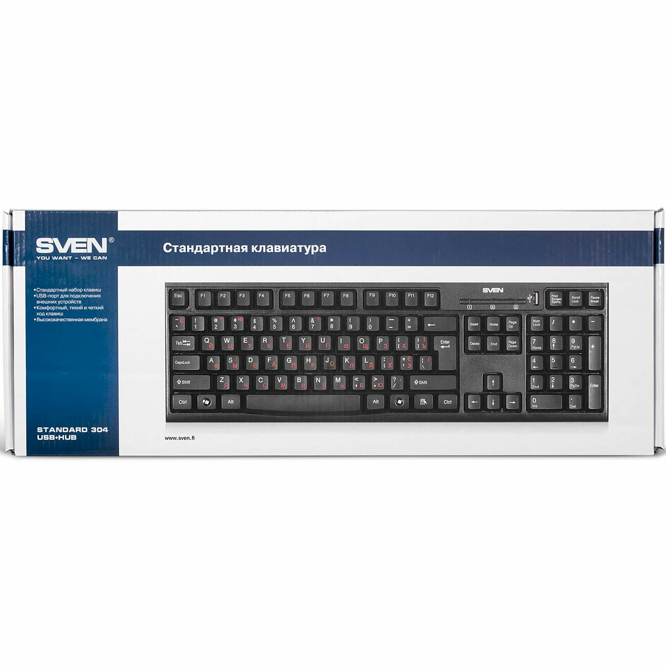 Клавиатура Sven Standard 304 USB+HUB чёрная (SV-03100304UB)