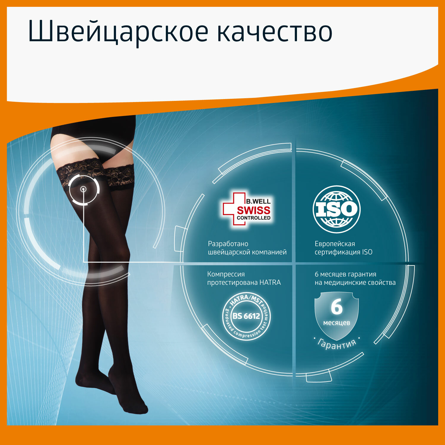 Компрессионные чулки B.Well JW-222 прозрачные с ажурным верхом 2 класс компрессии 5 Nero 1 шт 1 951 ₽