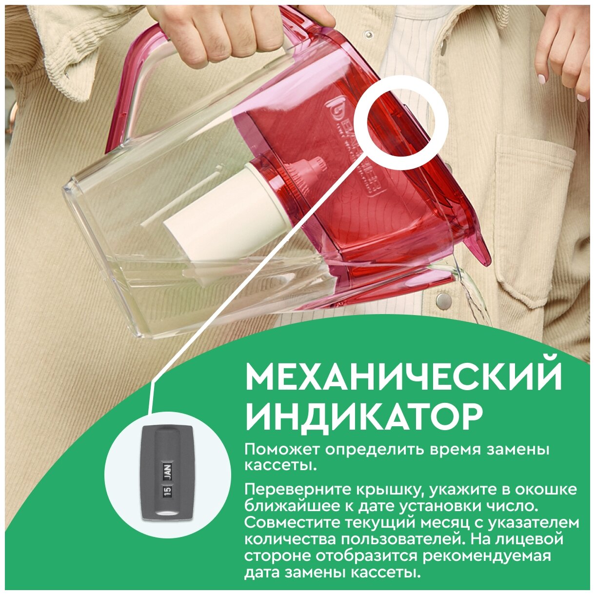 БАРЬЕР Гранд Нео нефрит XL, фильтр-кувшин для очистки воды, 4,2 л, механический индикатор