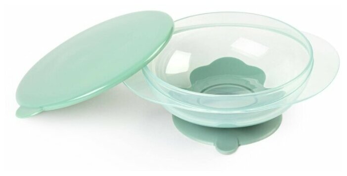 Тарелка детская Happy Baby на присоске с крышкой, зеленая