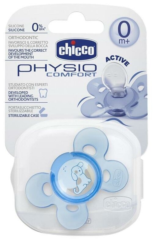 Пустышка Chicco Physio Comfort анатомическая силиконовая 1шт/ от 6 мес+ /Слоники/пустышка 6/соска силикон/пустышка для мальчика