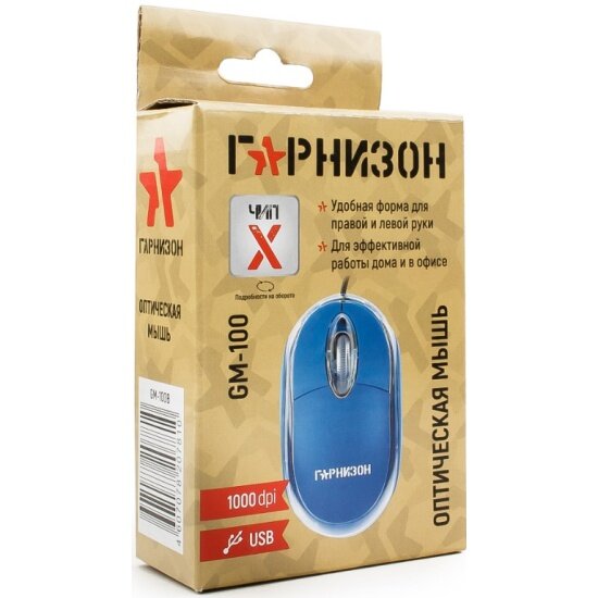 Мышь"Гарнизон" Gm-100b, проводная, оптическая, 1000 dpi, Usb, чип- Х, 1,15 м, синяя Гарнизон 3584972 .