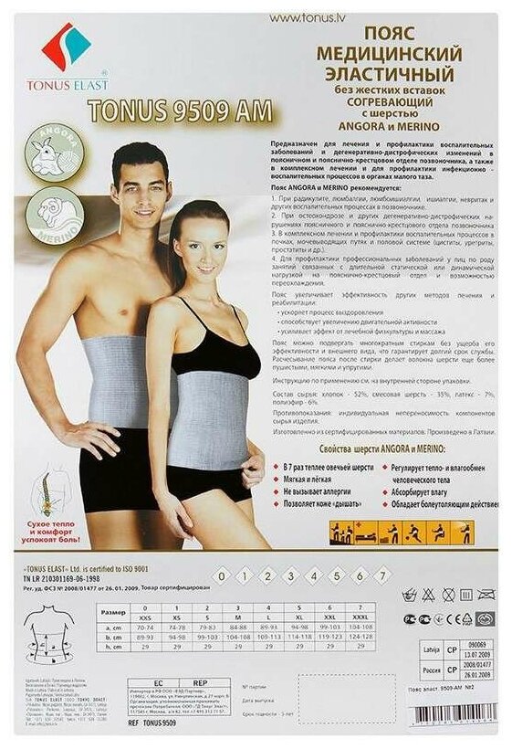 Пояс медицинский эластичныйс шерстью №2 TONUS м.9509-АМ информация: