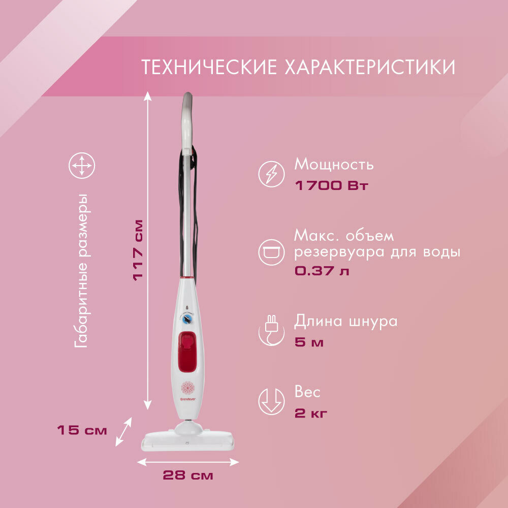 Паровая швабра Endever Odyssey Q-606, бело-малиновый (63419)