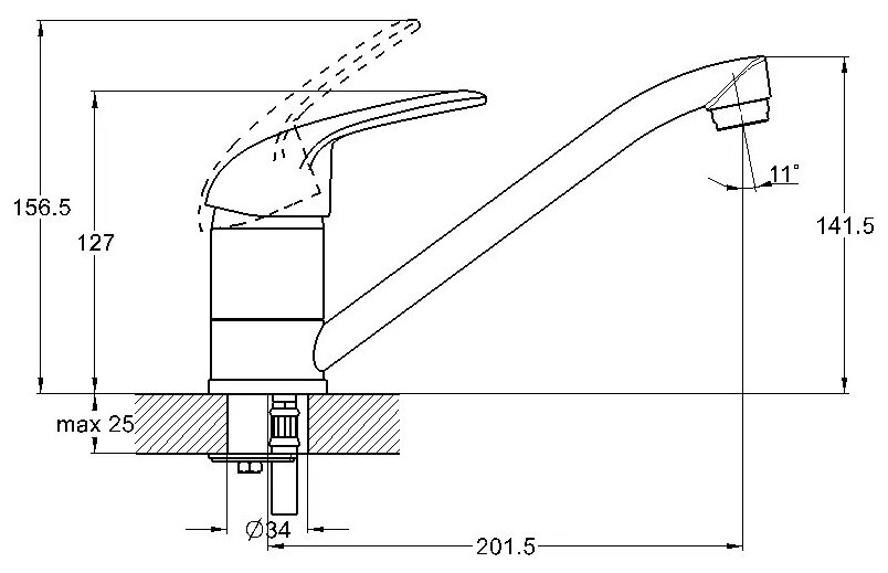 Смеситель VARION Armaturen KRONA 9247973 для кухни однозахватный, хром
