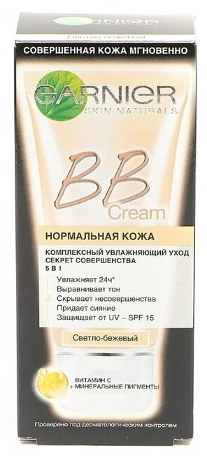 GARNIER BB крем Секрет совершенства 5-в-1 для нормальной кожи, SPF 15, 50 мл, оттенок: светло-бежевый