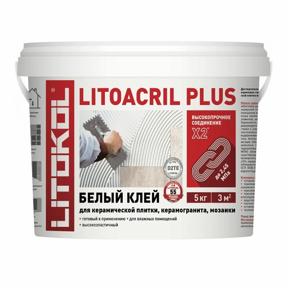 Клей для плитки дисперсионный Litokol Litoacril Plus (5кг) информация: