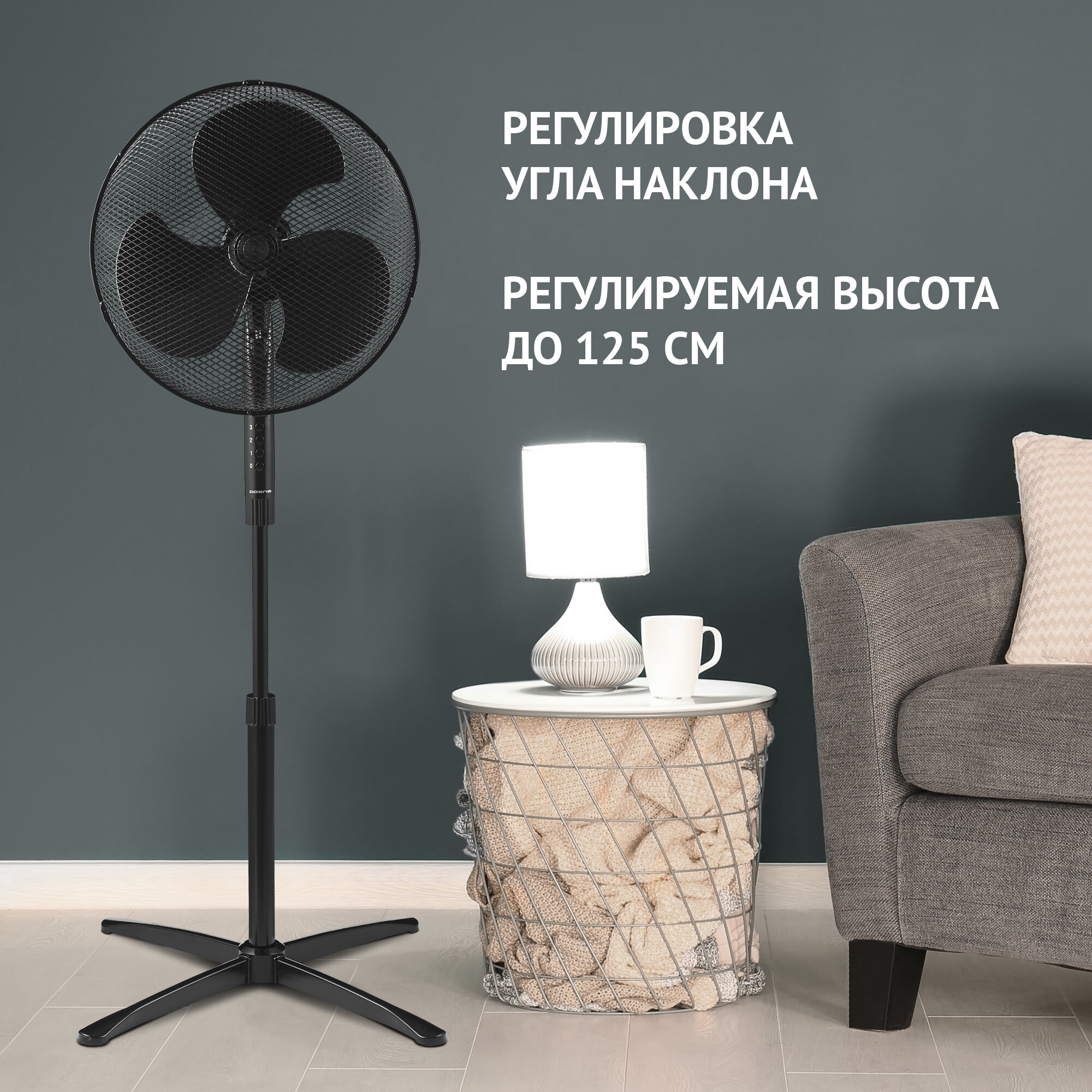 Вентилятор напольный Polaris PSF 1140, 55 Вт, 3 скорости, черный