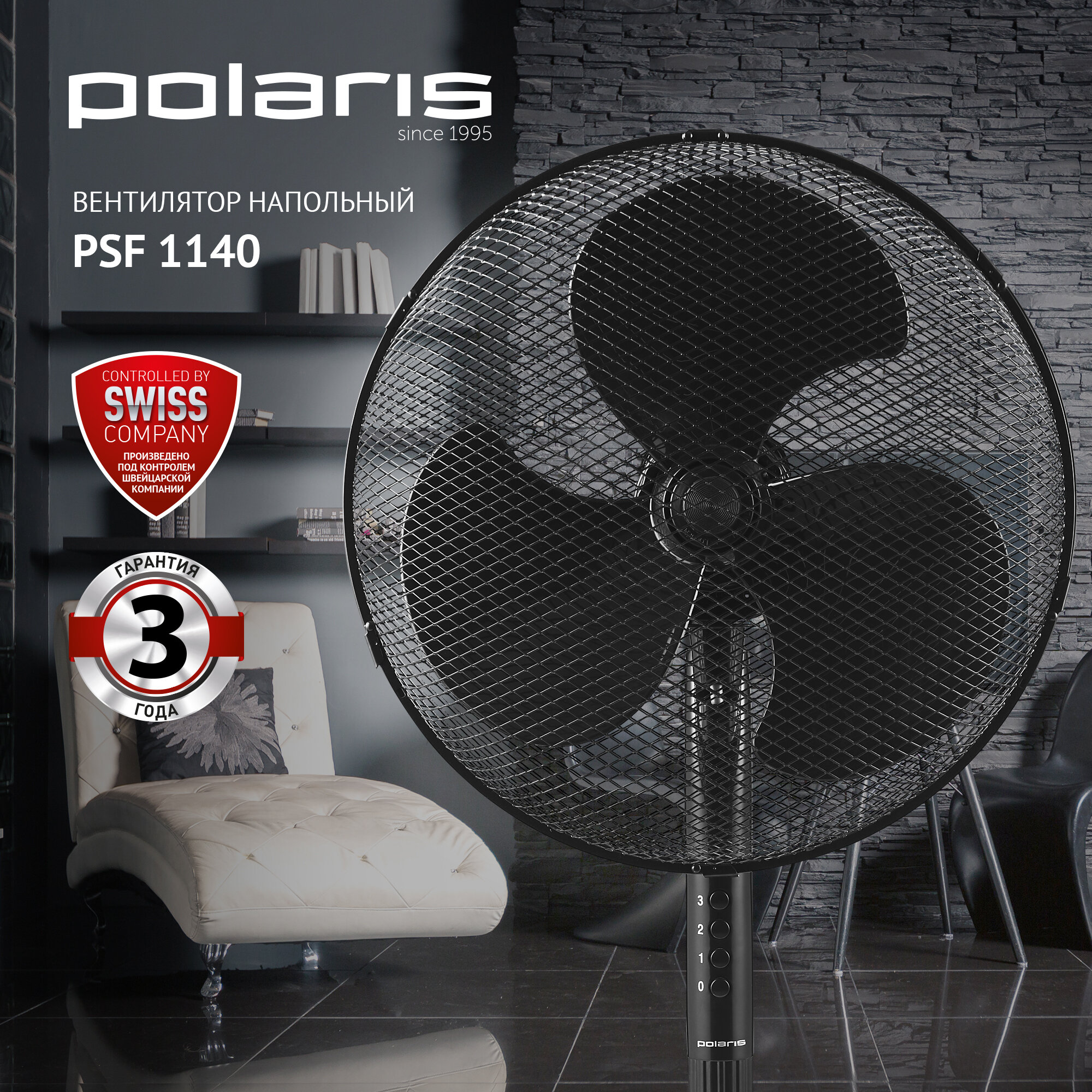 Вентилятор PSF 1140 напольный, 3 скорости, 55 ВТ (черный) (1) "POLARIS"