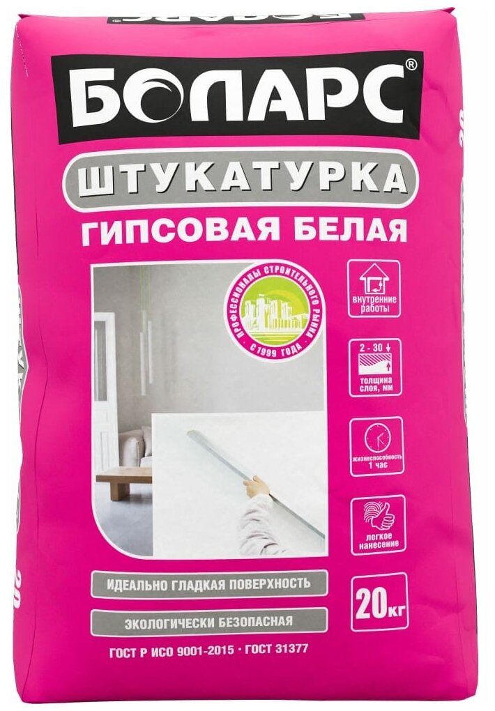 Гипсовая штукатурка боларс белая, 20 кг 00000006176 информация: