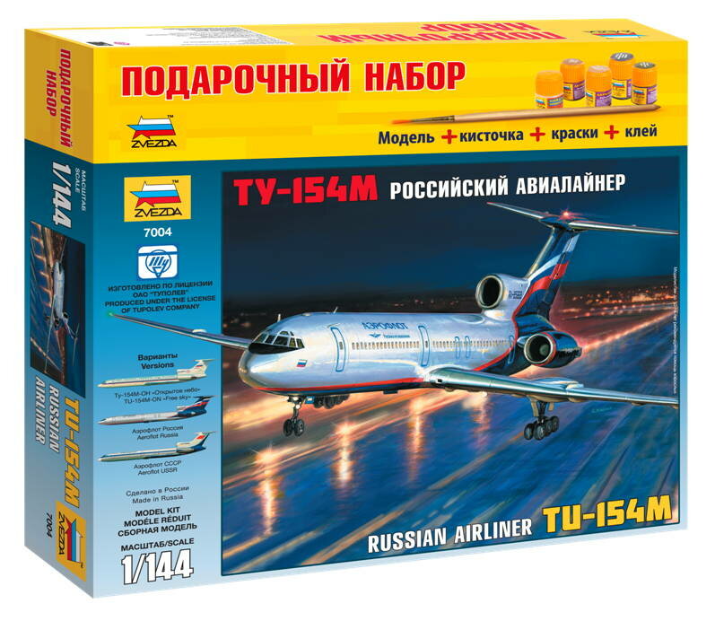 Сборная модель Звезда Российский авиалайнер Ту-154М, 1/144, Подарочный набор 7004ПН информация: