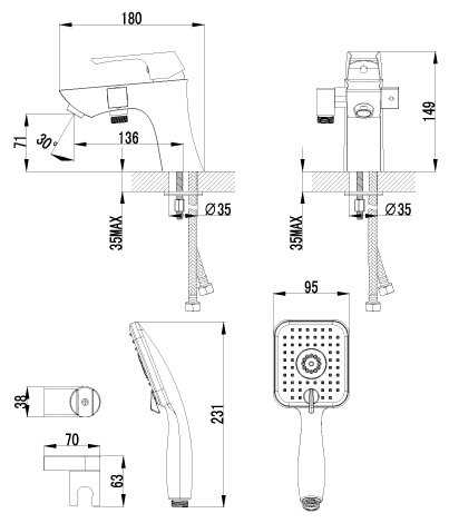 Смеситель на борт ванны Lemark Unit LM4515C на борт ванны 13 040 ₽