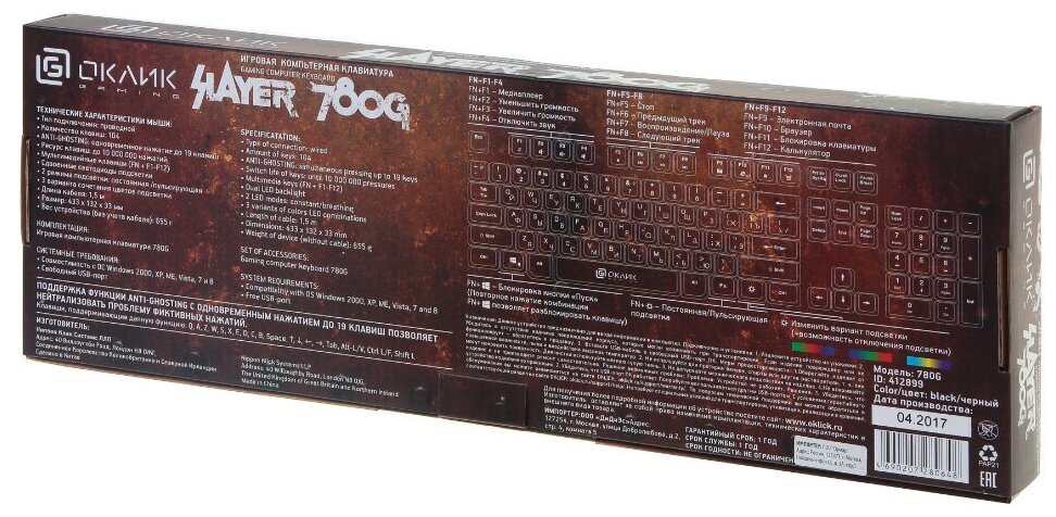 Клавиатура OKLICK 780G SLAYER, USB, черный [412899] (SW-GK3) 1 712 ₽