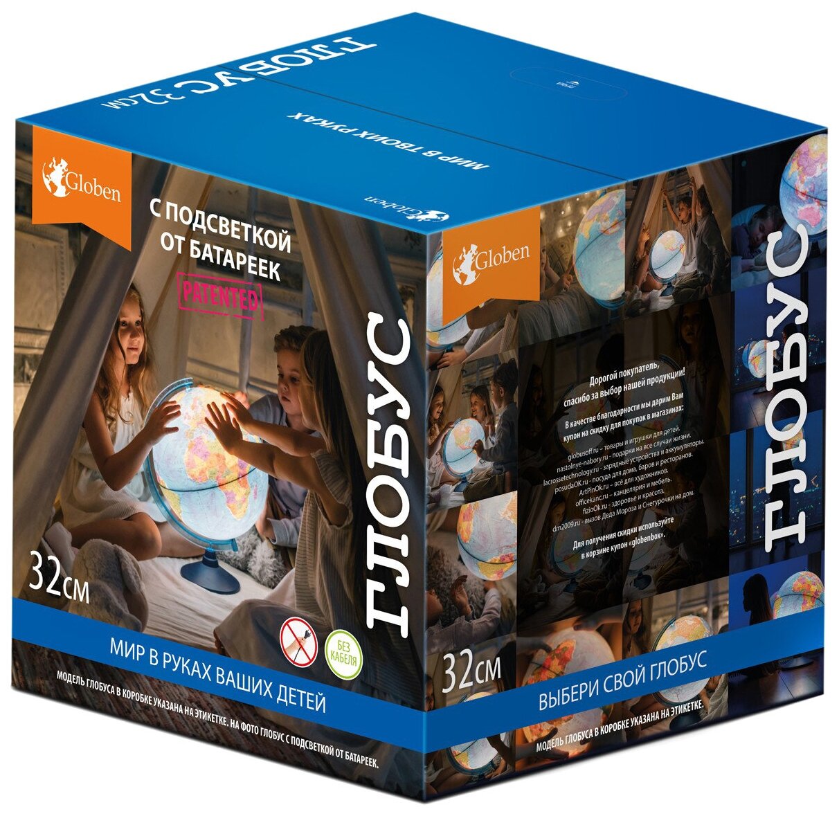 Globen Глобус Земли рельефный, с LED-подсветкой и утяжелителем в подставке, диаметр 32 см + карта "Мир и Россия" + лупа с подсветкой