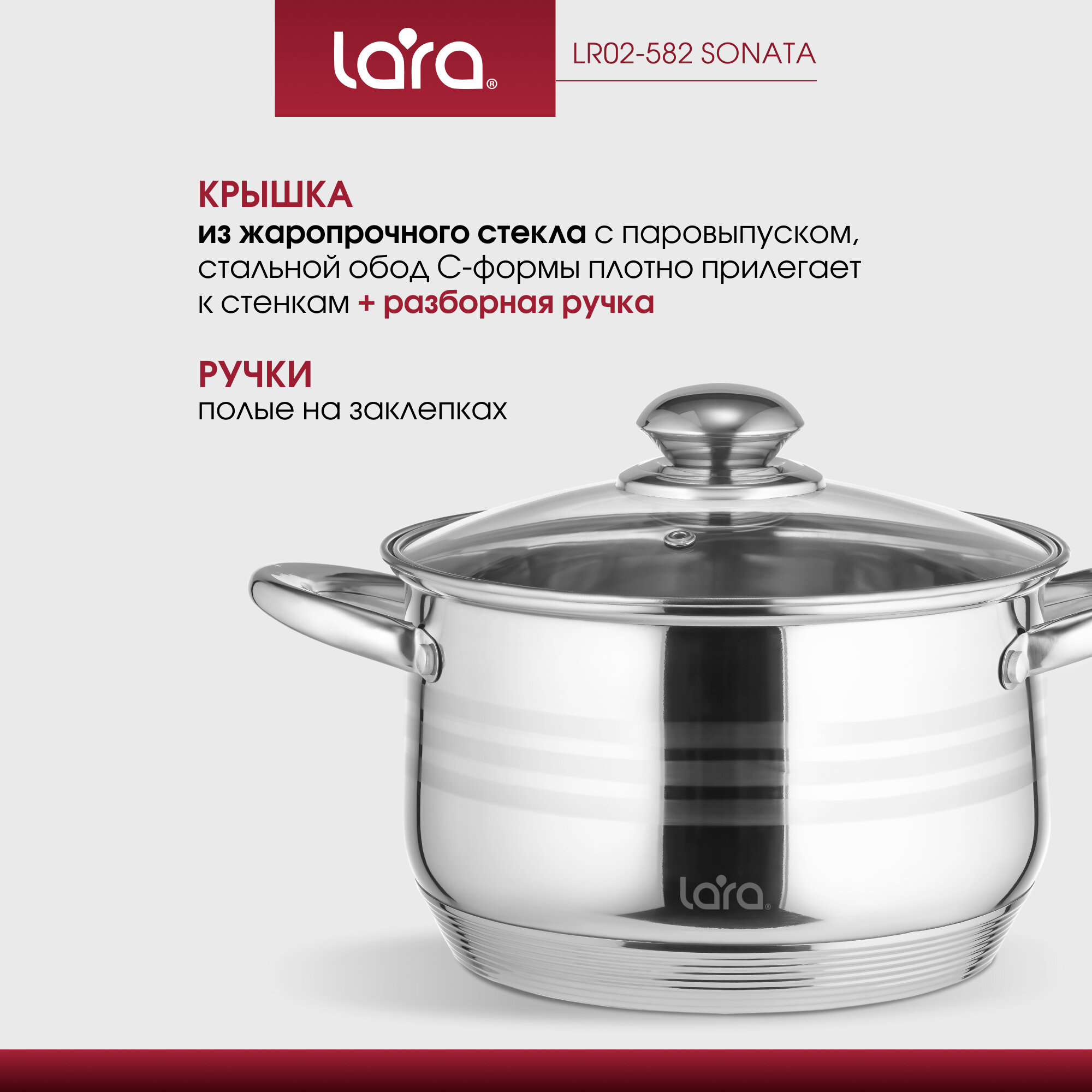 Кастрюля LARA Sonata LR02-582, объём 3,9 литров