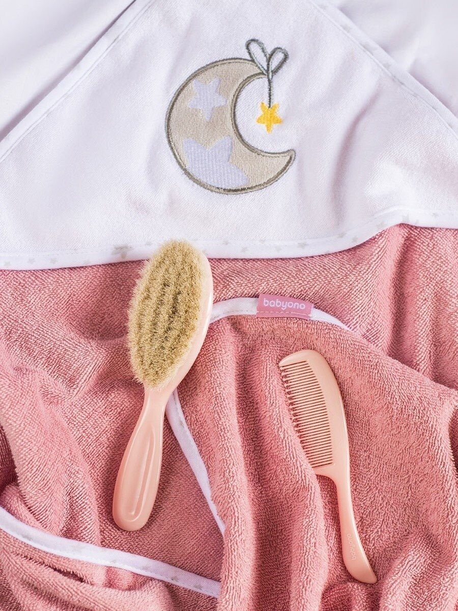 Набор детский для ухода за волосами: расческа и щетка с натуральной щетиной , цвет белый/розовый (1шт.)