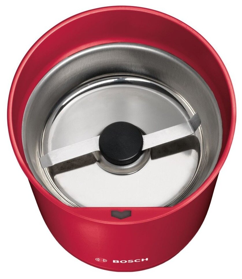 Кофемолка электрическая Bosch TSM 6A014R, до 75 г зерен, 180 Вт, один режим помола, 150 грамм в минуту, нож из нержавеющей стали, красная