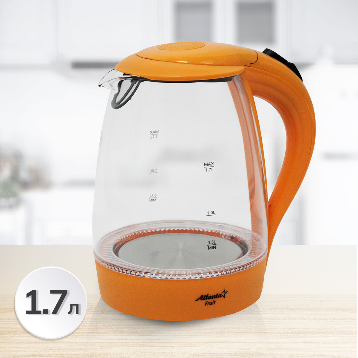 Чайник электрический ATLANTA ATH-2461 1,7л, 2000 Вт, оранжевый/стекло 2 521 ₽