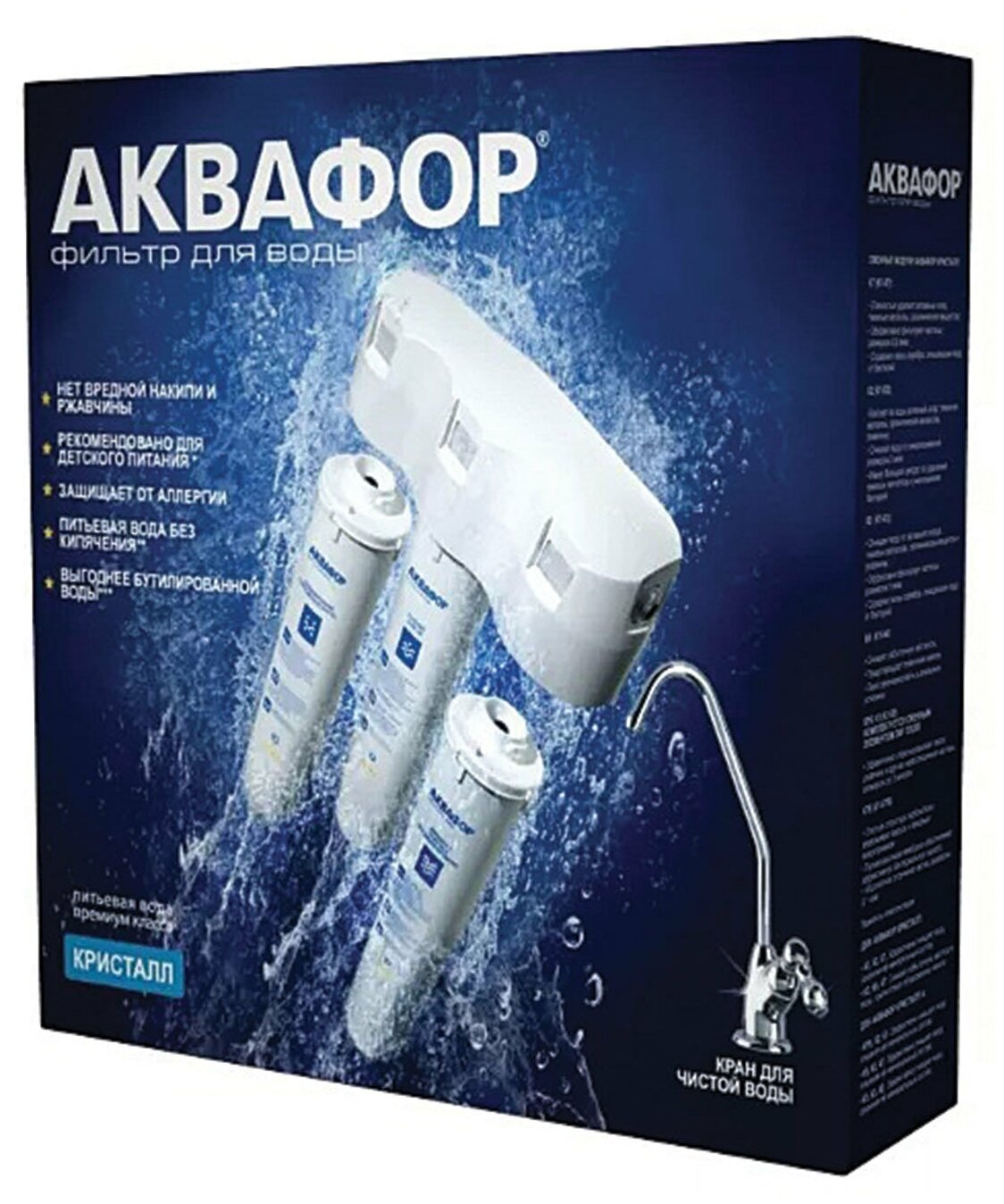10 цен на Фильтр для воды АКВАФОР «Кристалл Н», для холодной воды, 3 ступени, ресурс 6000 л, кран в комплекте