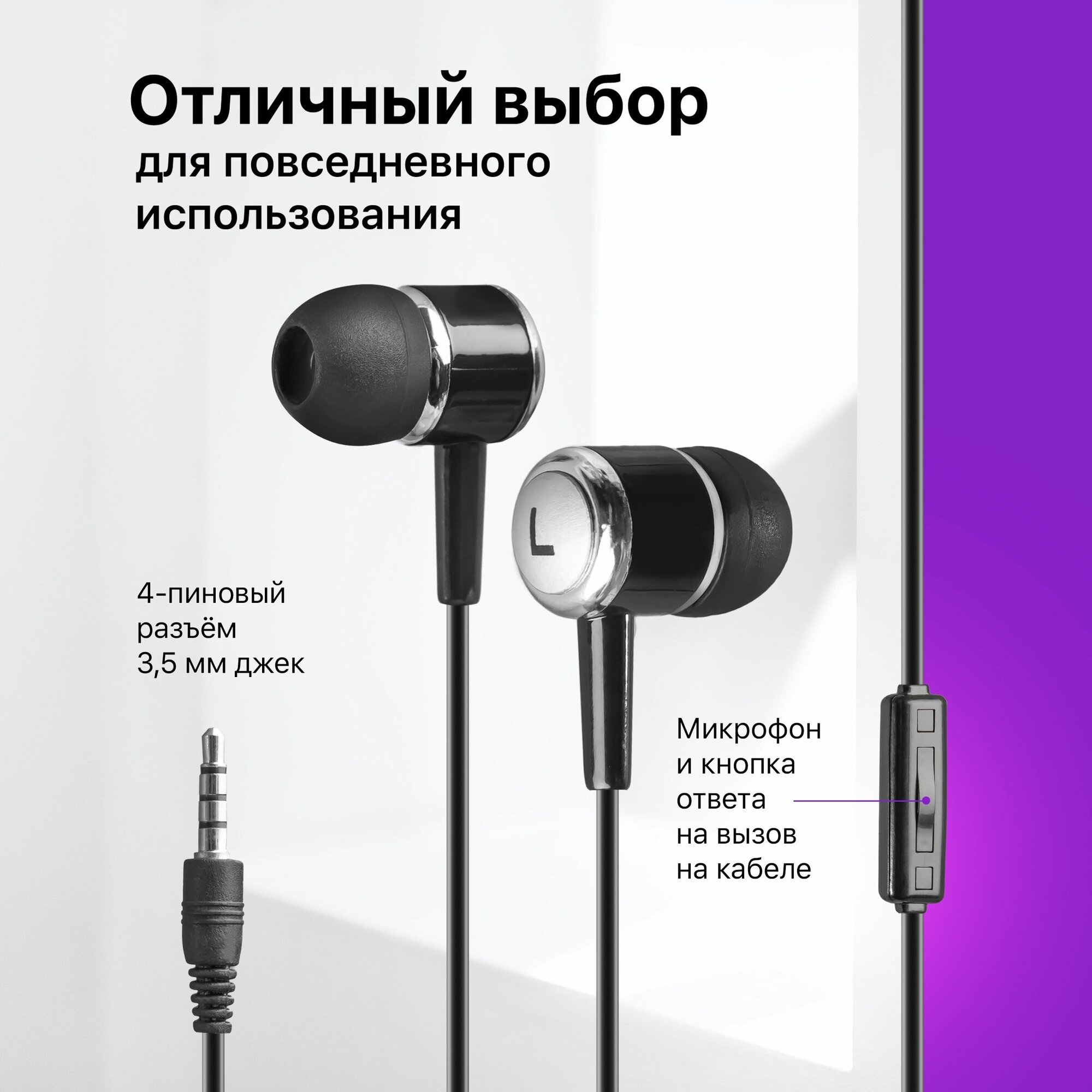 Наушники-вкладыши с микрофоном Defender "Pulse" 427, 1,2м, черный ( Артикул 260517 ) 390 ₽