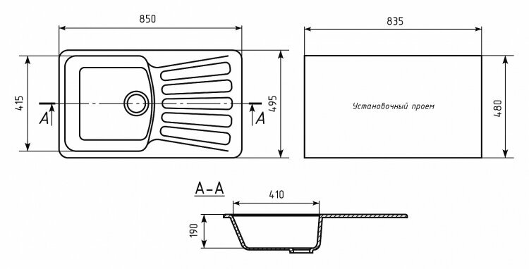 Мойка для кухни из искусственного камня Ulgran U-406-308, черный