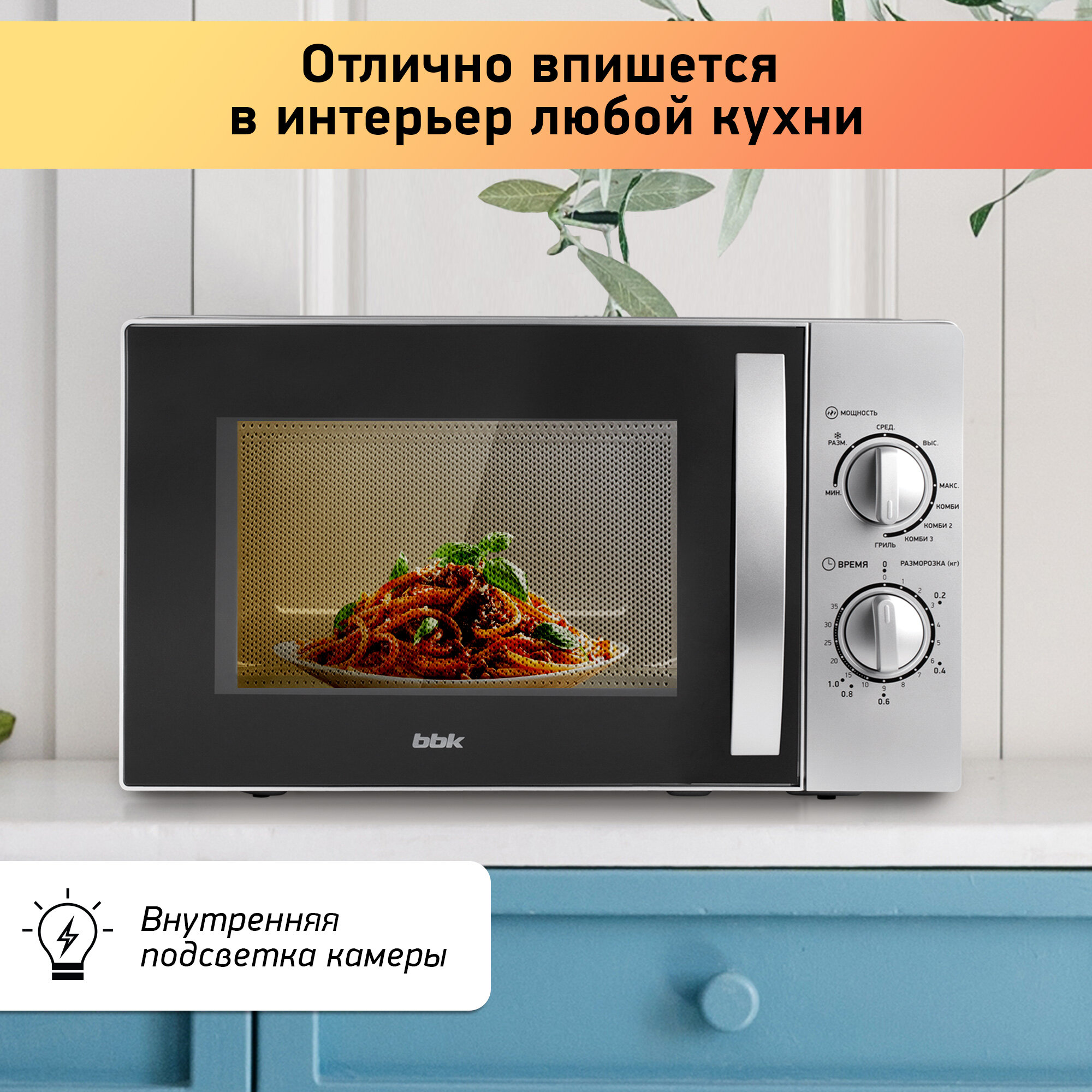 10 цен на Микроволновая печь BBK 20MWG-740M/S silver (20л, 700Вт, гриль, механическое управление) (20MWG-740M/S)