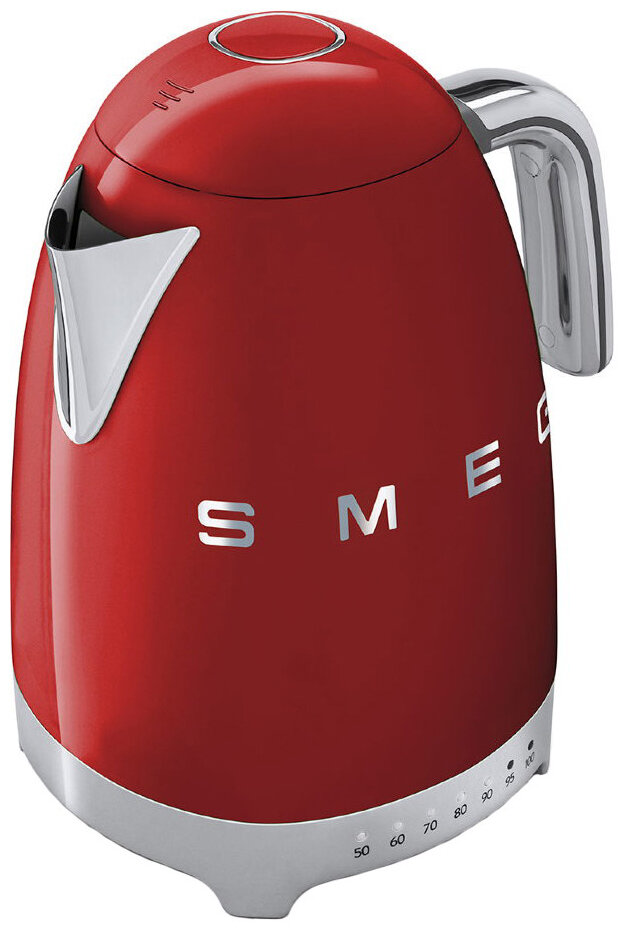 Электрический чайник Smeg Стиль 50-х г., чайник электрический, 1.7 л, 2400 Вт, корпус из нержавеющей стали, регулировка температуры, красный