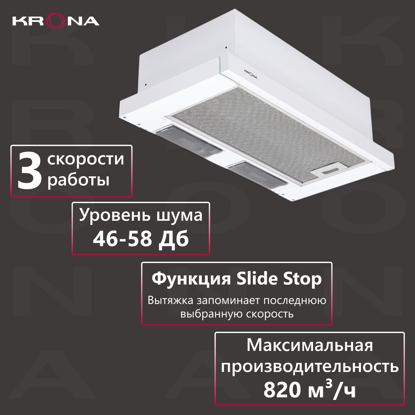 Вытяжка кухонная встраиваемая телескопическая Крона Kamilla 600 white 2М металл белый 2 режима 3 скорости 58Дб 820м3/ч / вытяжная система вентиляции